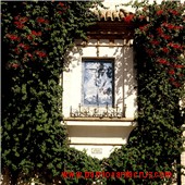 representa al Cristo de las Misericordias de la Hermandad de Santa Cruz, envuelto por el vivo color de una buganvilla